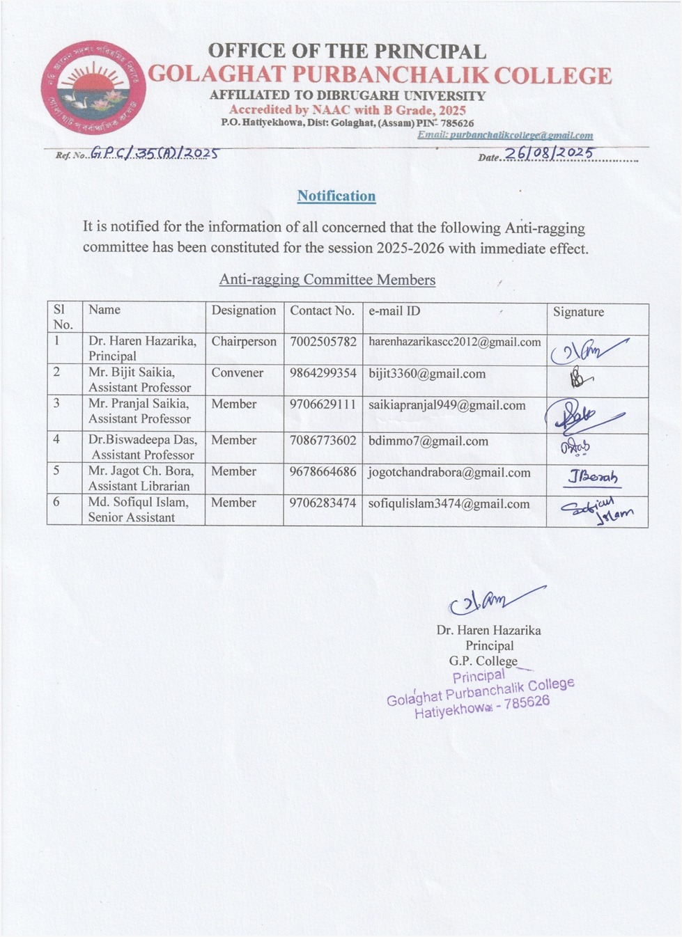 ANTI RAGGING COMMITTEE: (2025-2026)