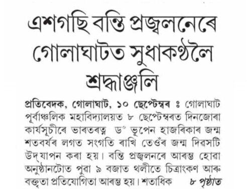 Golaghat Purbanchalik College commemorated the birth centenary of Dr. Bhupen Hazarika, the legendary musician, lyricist, and cultural icon of Assam, with a vibrant day-long program on September 8, 2025.