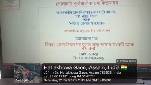 An academic discussion session was organized at Golaghat Purbanchalik Mahavidyalaya on 21st February 2026 (Saturday) on the occasion of International Mother Language Day. The programme was conducted in the college premises under the initiative of the Internal Quality Assurance Cell (IQAC), in collaboration with the Department of Assamese and the Academic Cell.