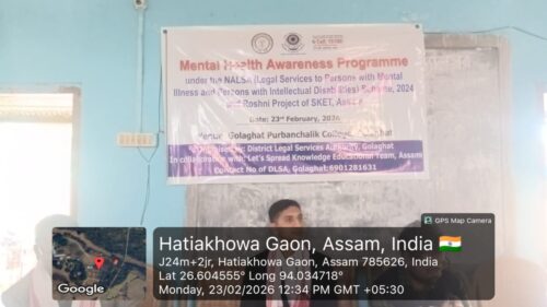 A Mental Health Awareness Programme was organized on February 23, 2026, under the NALSA (Legal Services to Persons with Mental Illness and Persons with Intellectual Disabilities) Scheme, 2024, and the Roshni project of SKET, Assam.